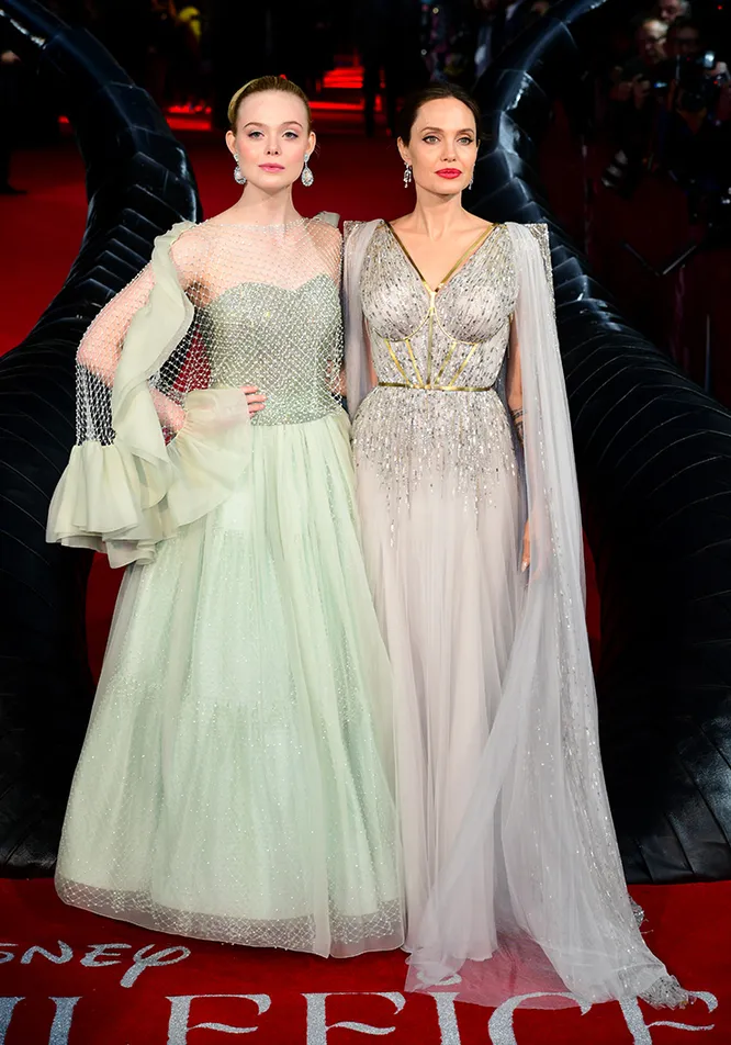 Каст фильма «Малефисента: Владычица тьмы» продолжает представлять фильм в мировых столицах. Последняя остановка — Лондон, куда прибыли исполнительницы главных ролей Анджелина Джоли и Эль Фаннинг. Актрисы произвели фурор на красной дорожке, появившись в сказочных платьях принцессы. Эль выбрала пышное Armani Privé, а Анджелина — искрящееся Ralph & Russo с кейпом, созданное специально для нее.