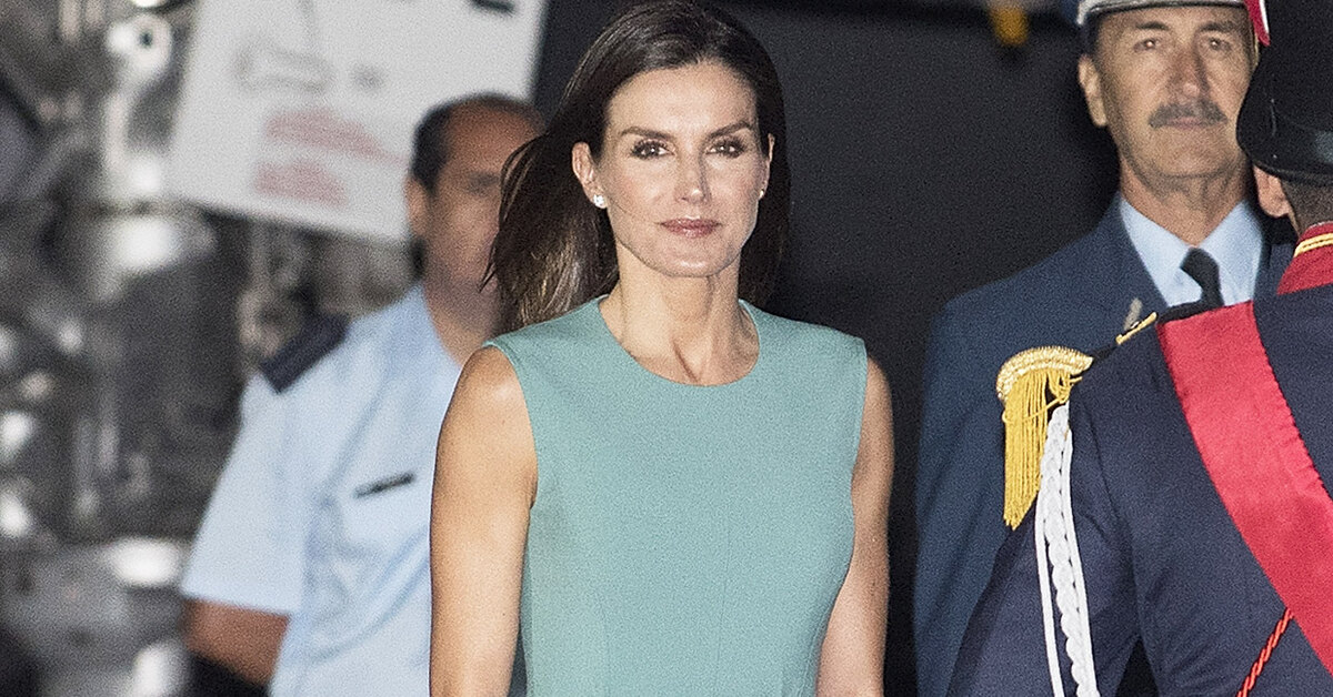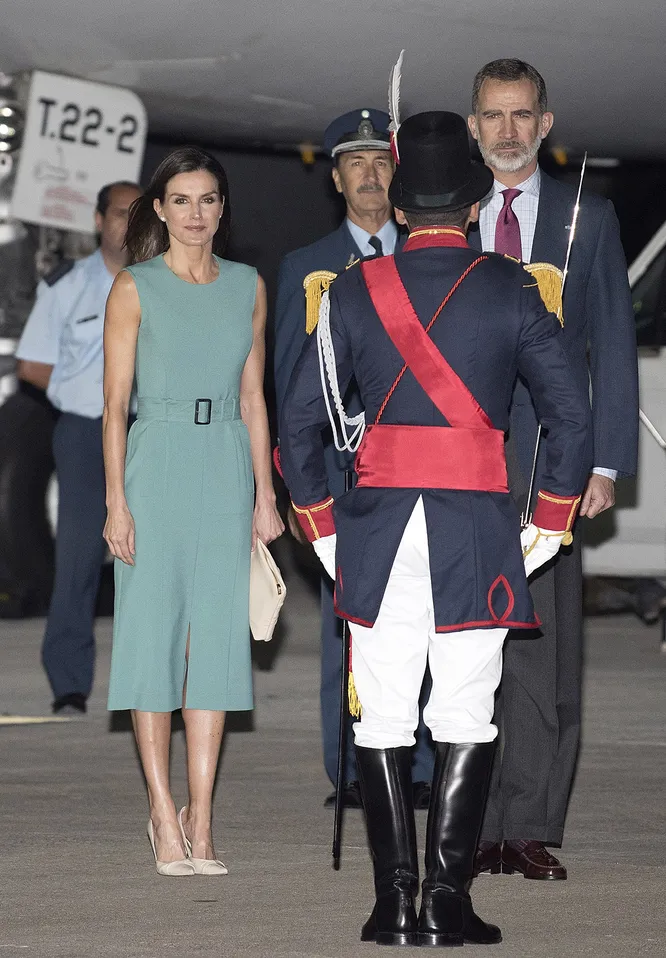 Королева Летиция в ментоловом платье с разрезом прилетела в Буэнос-Айрес