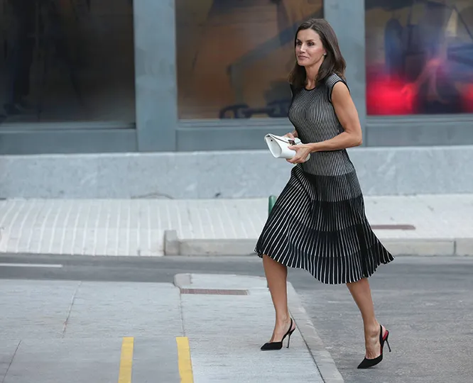 Hugo Boss - один из любимых брендов королевы Летиции. Монаршая особа регулярно появляется на официальных мероприятиях в нарядах немецкой марки, и зачастую даже дублирует особенно удачные образы. Так, 18 июля супруга Филиппа VI приняла участие в заседании Консультативного совета, выбрав для этого приталенное платье с эффектом оптической иллюзии за 338 фунтов (26 700 рублей), которое ранее уже не раз надевала для публичных выходов. Образ она дополнила черными лодочками Steve Madden с открытой пяткой и белым клатчем Carolina Herrera.