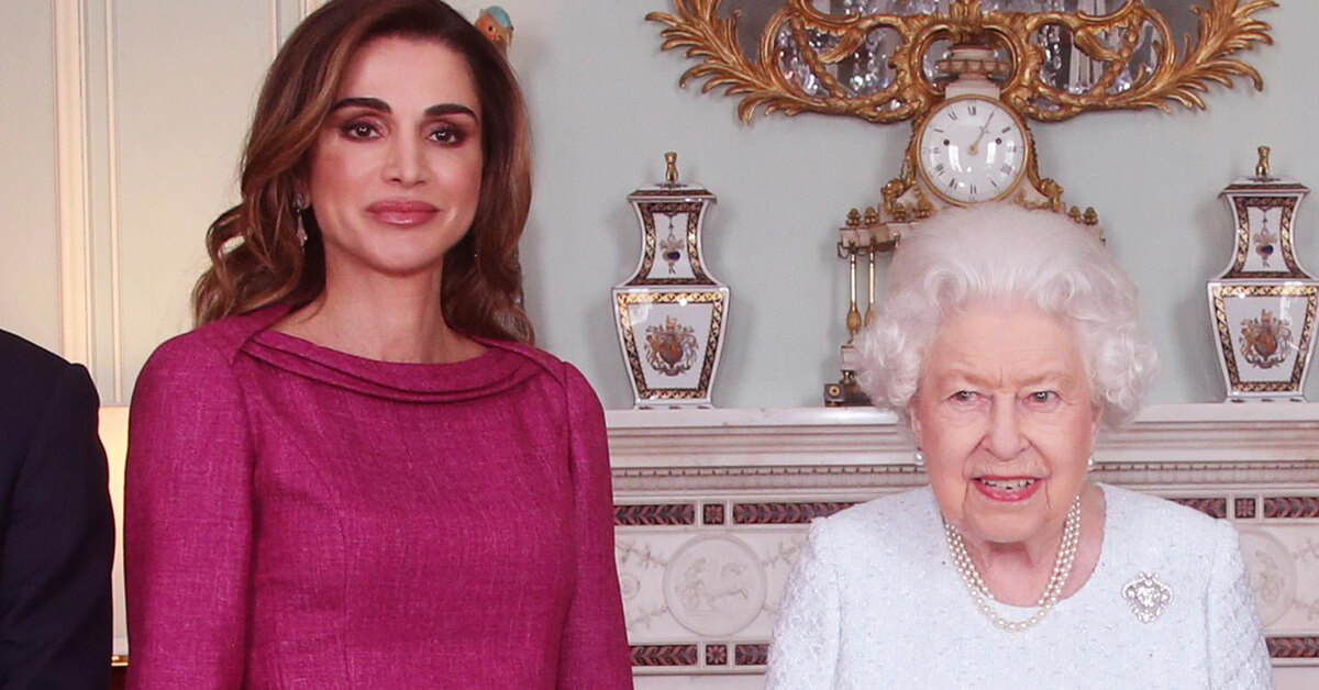 Королева Рания в платье цвета фуксии встретилась с Елизаветой II в Букингемском дворце
