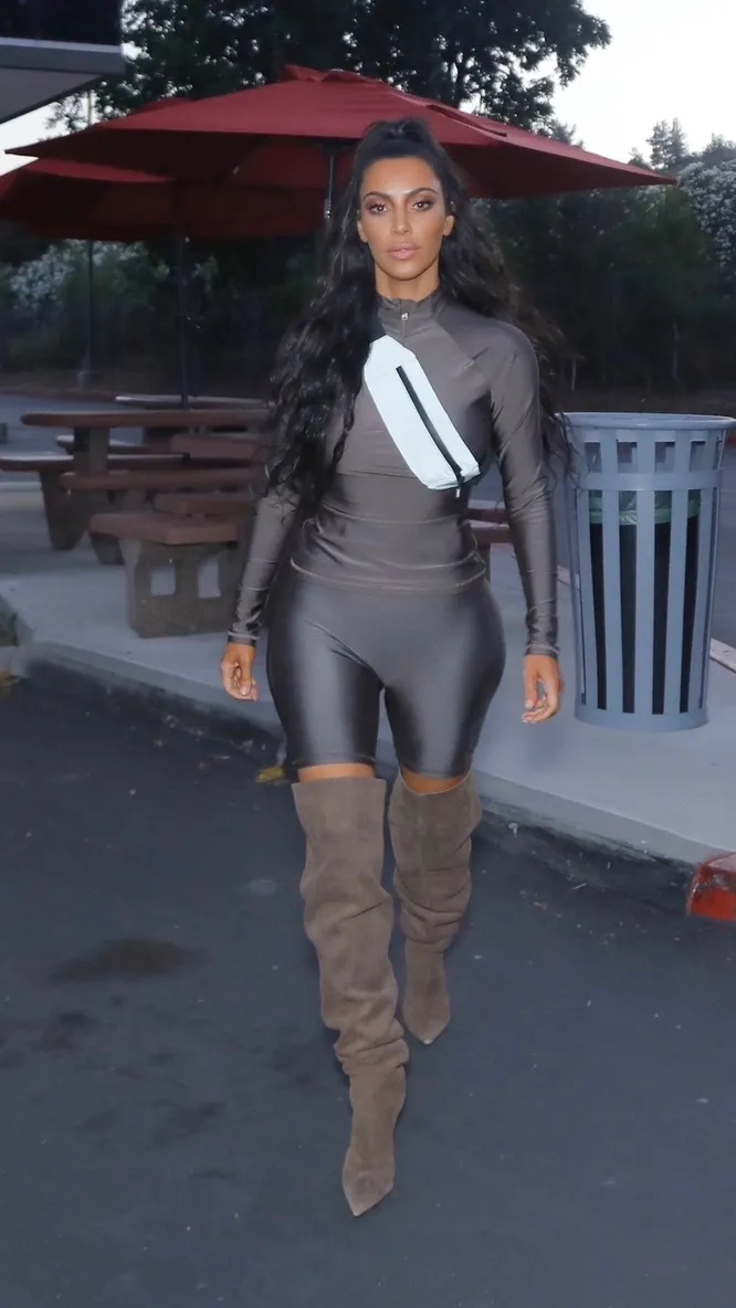 Костюм из спандекса и замшевые сапоги: новый образ Ким Кардашьян, который обсуждают все
