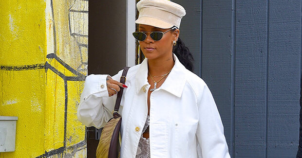 Кружевное боди и оверсайз-джинсовка: Рианна в белоснежном комплекте в Нью-Йорке