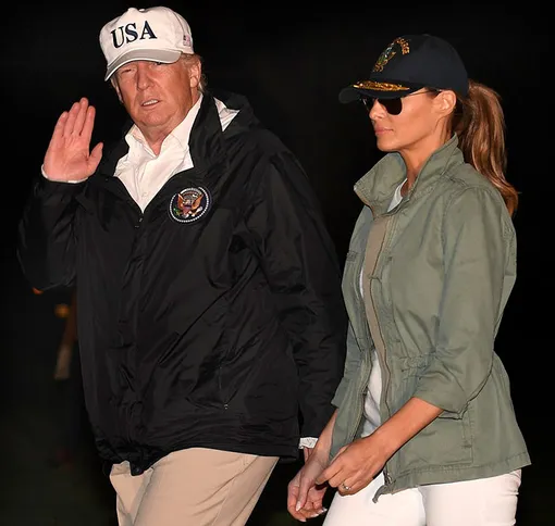 Вчера 47-летняя Мелания Трамп прилетела вместе с мужем в Пуэрто-Рико, чтобы встретиться с жителями районов, пострадавших от самого сильного за последние 90 лет урагана. С трапа самолета первая леди США вышла в белоснежных джинсах и такой же светлой футболке, военной куртке с карманами — карго и удобных ботинках Timberland. Все же Мелания из тех, кто учится на своих ошибках: больше на шпильках в зону бедствия она не приезжает.