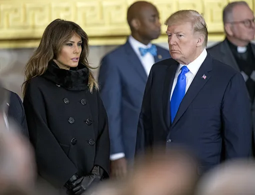 Сегодня в Вашингтоне, в ротонде Капитолия, прошла церемония прощания с «пастором Америки», 99-летним Билли Грэмом, известным американским проповедником. Проститься с ним пришли и Мелания и Дональд Трамп. Супруга президента выбрала лаконичное пальто длиной ниже колена, кожаные перчатки и классические лодочки — все традиционного для подобных мероприятий черного цвета.
