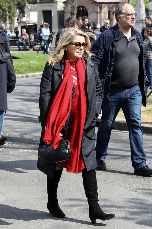 Катрин Денев нечасто балует преданных поклонников появлениями на публике, и потому каждый раз, когда актриса все-таки выходит в свет, ее сразу же окружают толпы папарацци. Так, накануне днем знаменитость была замечена по пути на торжественную церемонию прощания с Аньес Варда (напомним, на днях режиссер ушла из жизни в возрасте 90 лет).