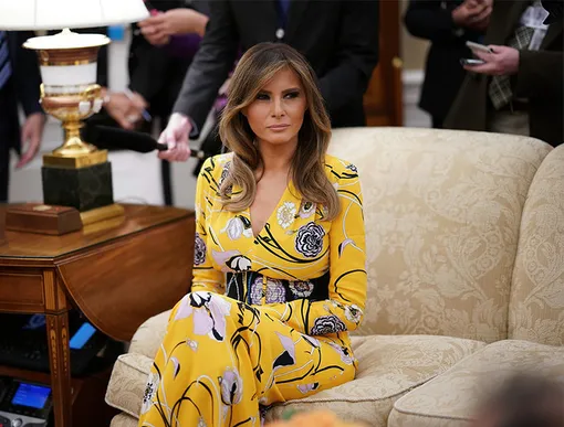 Луч света: Мелания Трамп в солнечно-желтом платье Emilio Pucci