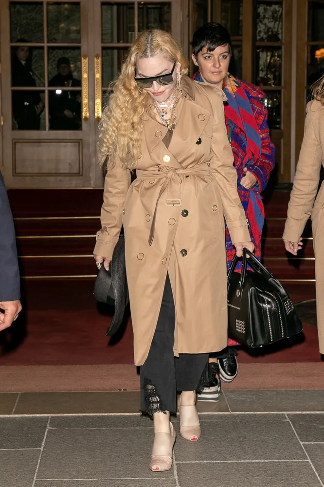 Во время Недель моды папарацци работают вовсю: они умудряются следить не только за моделями, но и ловить в свои объективы самых неожиданных звезд. Так, в воскресенье в Париже была замечена Мадонна в довольно элегантном образе, которая предложила новые сочетания с классическим бежевым тренчем. Поп-звезда не могла обойтись без массы блестящих украшений, а потому надела целую связку цепочек, массивные кольца на каждый палец и ретрофутуристичные квадратные очки с отделкой из страз. Кроме того, она выбрала джинсы с необработанной кромкой и ботильоны нюдового оттенка.