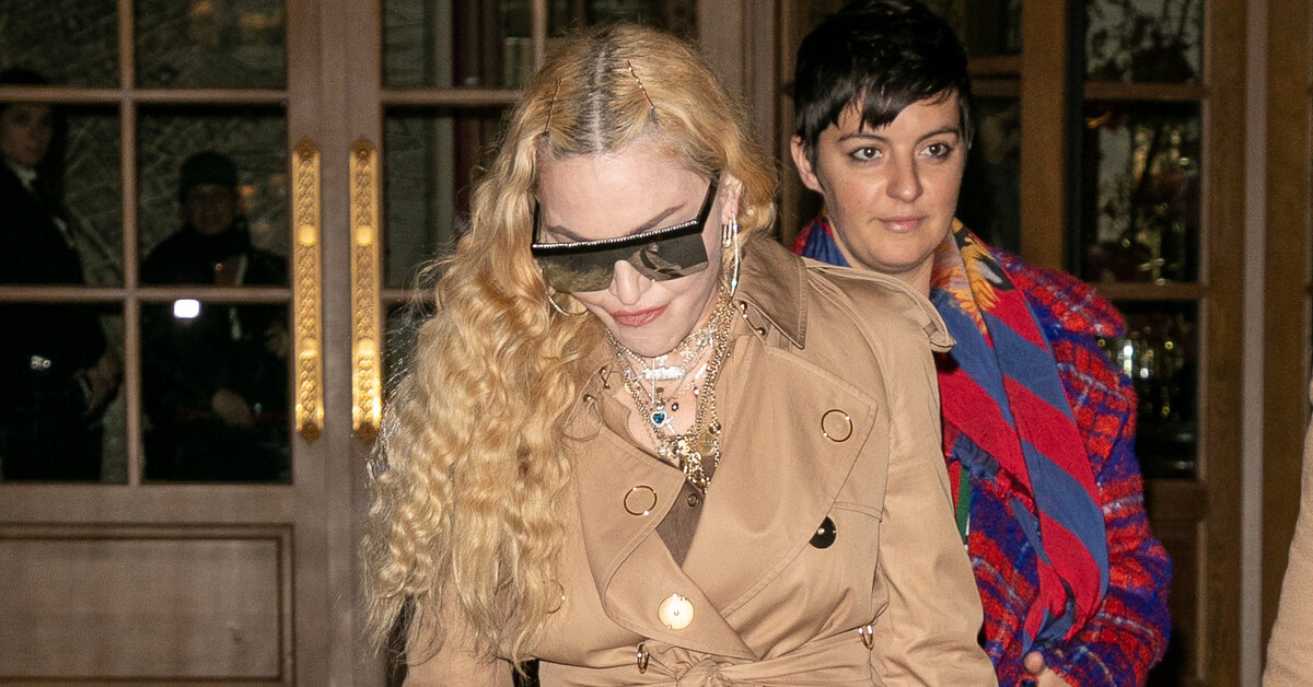 Мадонна в идеальном осеннем наряде из бежевого тренча и кучи украшений на Неделе моды в Париже