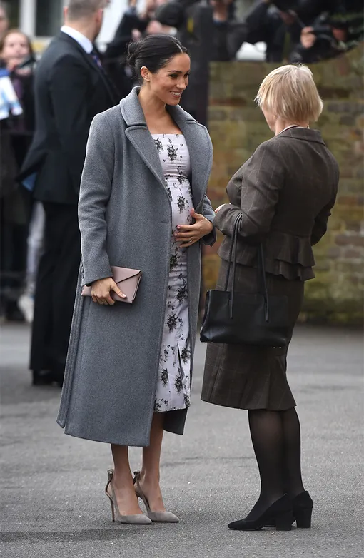 Меган Маркл хоть и находится уже «глубоко» в положении, все равно продолжает официальные визиты. Сегодня, например, герцогиня Сассекская посетила дом престарелых в Лондоне, который принимает актеров и представителей индустрии развлечений. Как известно, девушка не стесняется акцентировать внимание на заметно округлившемся животе, и в этот раз она выбрала цветочное платье Brock Collection, которое только в очередной раз подчеркнуло ее формы. Несмотря на внушительный срок (Меган должна родить уже весной), герцогиня не собирается отказываться от своих модных предпочтений, а потому дополняет наряд лаконичными туфлями Aquazzura на очень высокой шпильке. Завершило образ остромодное серое пальто по типу бушлата Soia & Kyo.