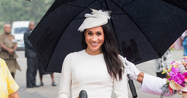 Следующая остановка австралийского тура герцога и герцогини Сассекских — Фиджи. Гарри и Меган прибыли в столицу Сува утром. С трапа самолета супруга принца спускалась в образе невесты — белоснежное платье, шляпка и лодочки. Если вчера Маркл отдала предпочтение демократичному бренду, то сегодня любовь к дорогим вещам вновь к ней вернулась. Приталенное платье с длинными рукавами принадлежит бренду Zimmermann. Во время пребывания на Фиджи пара поселится в роскошном отеле Grand Pacific Hotel, где стоимость за одну ночь превышает тысячу долларов.