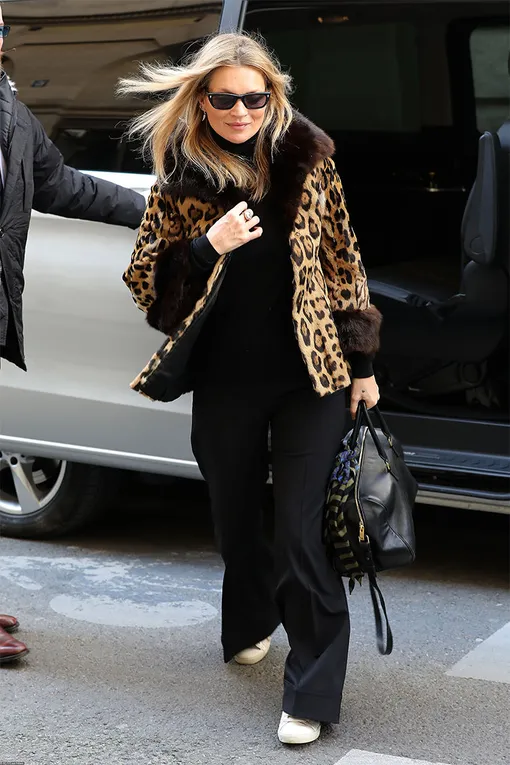 Мех, широкие брюки и белые кеды: 44-летняя Кейт Мосс в Париже