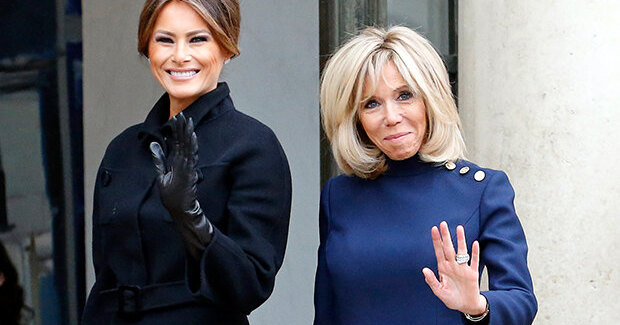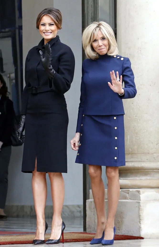 Мелания Трамп и Брижит Макрон в элегантных монохромных нарядах в Париже