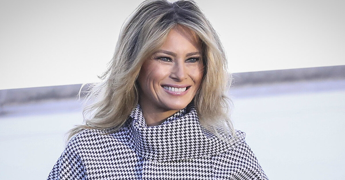 Мелания Трамп кутается в безразмерное пальто с принтом «гусиная лапка» и дебютирует как блондинка
