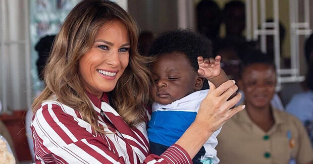 На минувшей неделе в рамках Генеральной Ассамблеи ООН в Нью-Йорке Мелания Трамп анонсировала свою дебютную одиночную поездку в Африку, в рамках которой она посетит 4 страны — Гану, Малави, Египет, Кению — для продвижения гуманитарных программ. Первой остановкой стала Гана. Мелания прилетела в столицу — Аккру, где ее встречала первая леди страны Ребекка Акуфо-Аддо.