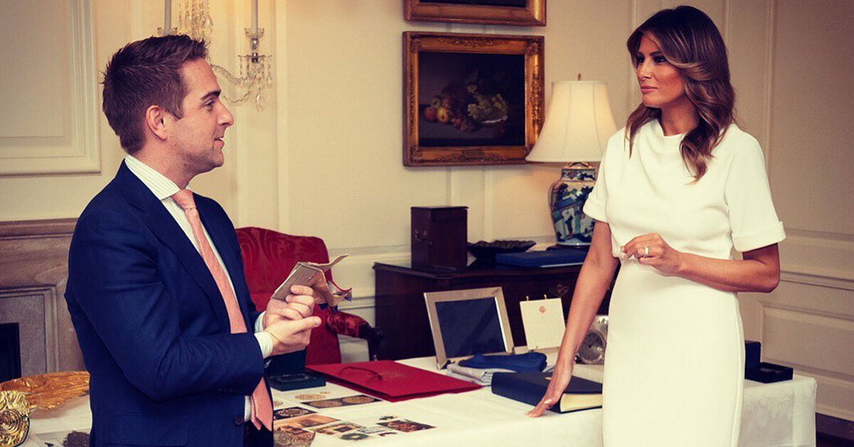 Мелания Трамп в белоснежном платье и нюдовых лодочках выбирает декор для Белого дома