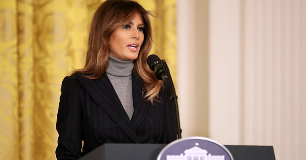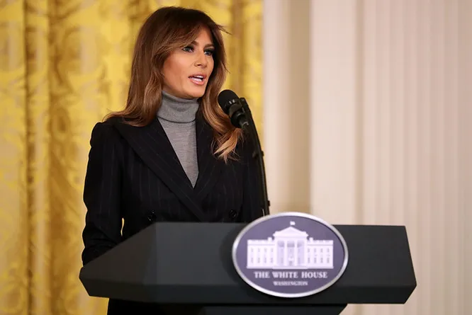 Вчера в Вашингтоне прошел саммит, посвященный проблеме наркотиков, в частности распространению опиоидной наркомании в государстве. Среди выступавших была и супруга президента Мелания Трамп. Она появилась в строгом брючном костюме, классических лодочках и серой водолазке — идеальной комбинации для официального мероприятия.