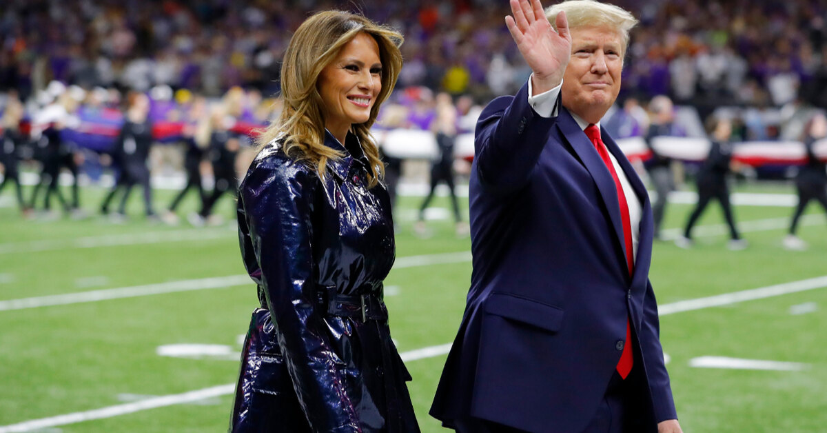 Мелания Трамп в плаще цвета металлик и замшевых сапогах посетила футбольный матч