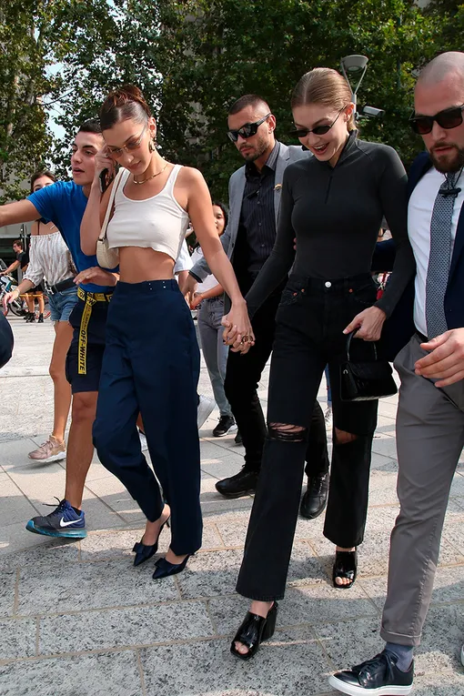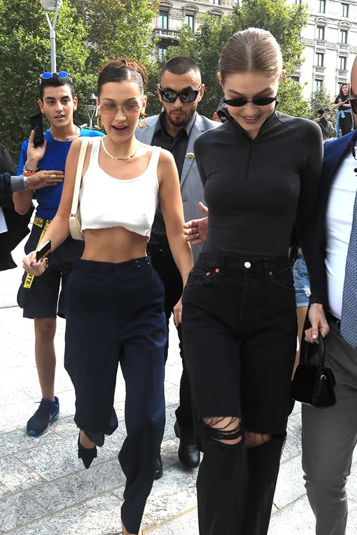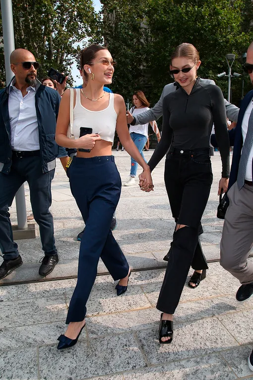 После Нью-Йорка и Лондона модный марафон закономерно переместился в Милан. Новые коллекции уже показали Аlberta Ferretti и Jil Sander. Сегодня еще более насыщенный событиями день: нас ждет показ Prada. Сестры Хадид по долгу службы уже в Италии, а между шоу наслаждаются местной кухней. Белла и Джиджи попали в объектив фотографов как раз перед походом в ресторан. Обе выбрали широкие брюки (приготовились к пасте). Белла предпочла короткий топ (все-таки пасты будет немного), а Джиджи — водолазку на молнии. Такие разные, но вместе.