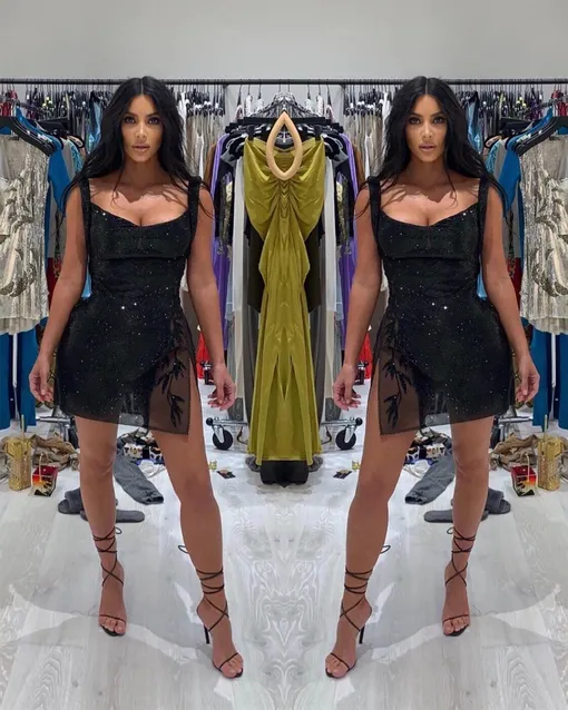 Ким Кардашьян славится своей любовью к винтажным платьям, и особенно сильно дива неравнодушна к шедеврам Versace. На днях семейство Кардашьян — Дженнер устроило шумную вечеринку в честь 40-летия Кортни, но Ким не стала следовать правилам приличия и явно захотела затмить именинницу. Супруга Канье Уэста выбрала для семейного празднования соблазнительный образ: ей приглянулось откровенное платье, созданное итальянским модным Домом в далеком 1997 году. Крошечное черное мини с разрезом, вышивкой со стеклярусом и прозрачной юбкой — неудивительно, что оно пришлось по душе нашей героине.