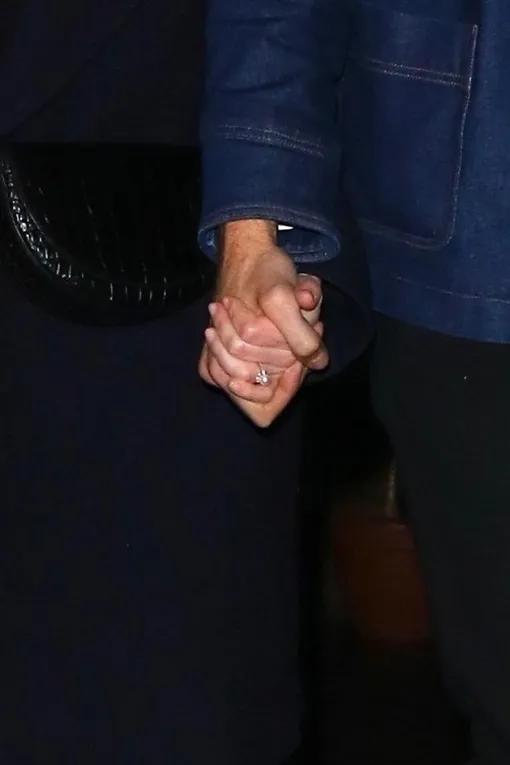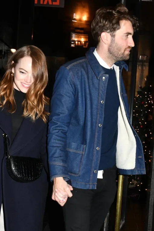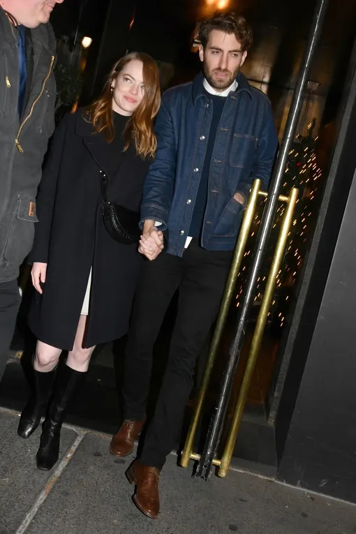 На прошлой неделе Эмма Стоун и ее бойфренд Дэйв МакКери объявили о помолвке после двух лет отношений. Вчера пара впервые появилась на публике после радостной новости, сходив на вечеринку телевизионного шоу Saturday Night Live в Нью-Йорке. То ли Эмма не хотела привлекать к себе внимания, то ли не желала затмить сияние помолвочного кольца, однако она выбрала очень сдержанный образ. Впрочем, не будем скрывать, что от ее минималистичного наряда мы в восторге: простое сочетание черной водолазки с белой мини-юбкой отсылает к 70-м, а темное пальто прямого кроя и высокие сапоги идеально дополняют это сочетание. Дэйв подарил Эмме необычное кольцо с крупной жемчужиной и бриллиантами вокруг нее.