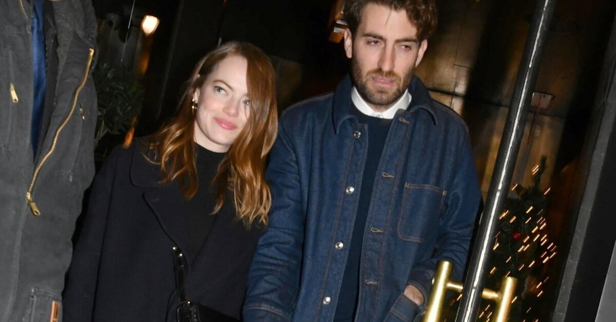 На прошлой неделе Эмма Стоун и ее бойфренд Дэйв МакКери объявили о помолвке после двух лет отношений. Вчера пара впервые появилась на публике после радостной новости, сходив на вечеринку телевизионного шоу Saturday Night Live в Нью-Йорке. То ли Эмма не хотела привлекать к себе внимания, то ли не желала затмить сияние помолвочного кольца, однако она выбрала очень сдержанный образ. Впрочем, не будем скрывать, что от ее минималистичного наряда мы в восторге: простое сочетание черной водолазки с белой мини-юбкой отсылает к 70-м, а темное пальто прямого кроя и высокие сапоги идеально дополняют это сочетание. Дэйв подарил Эмме необычное кольцо с крупной жемчужиной и бриллиантами вокруг нее.