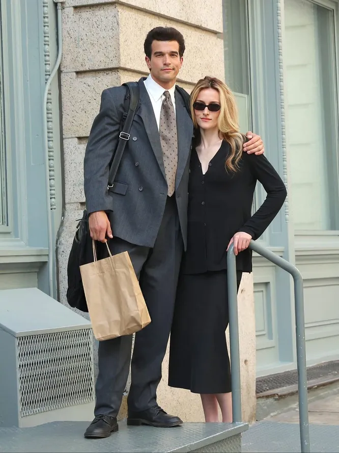 По словам стилиста, он сам очень бережно относится к этой паре. Всей съемочной команде хотелось добиться предельной точности и достоверности в изображении стиля публициста Calvin Klein. В интервью Variety Руди поделился некоторыми процессами, которые приблизили их к цели. Так, например, Манс изрядно «поиздевался» над сумкой Birkin, чтобы придать ей натуральные царапины и поношенный вид, чтобы аксессуар напоминал оригинальный. Он также специально разыскал на ресейле конкретную модель тоута Prada, которая отличалась от имевшейся на руках одной лишь верхней строчкой. Однако на этом поиски «правильных» моделей не закончились. «Мы нашли коллекционера из Канады, у которого, кажется, было 30 или 31 оригинальное изделие. Нельзя было с уверенностью подтвердить, что это именно те вещи, которые носила сама Бессетт-Кеннеди, но это были абсолютно аутентичные предметы того периода из персональной коллекции», — поделился стилист. Разница между первыми кадрами и финальными образами заметна даже при беглом взгляде. Самое главное, что некоторые комплекты были не скопированы точь-в-точь с архивных фото из 90-х, а вдохновлены эстетикой чистого минимализма. «Все знают, что они носили в период с 1996 по 1999 год, но мы рассказываем историю их знакомства, и самым трудным было выстроить повествование через одежду — показать, кем Кэролин была до того, как оказалась под бесконечным прицелом камер», — рассказал Манс. Мы нашли 7 фотографий из «Американской истории любви» и сравнили их с реальными образами Бессетт-Кеннеди, чтобы оценить, насколько хорошо команда справилась с поставленной задачей.