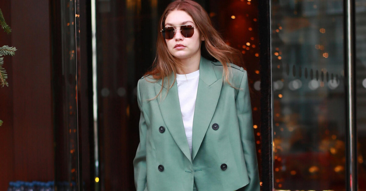 Модный цвет и нескучный фасон: Джиджи Хадид в идеальном брючном костюме на каждый день