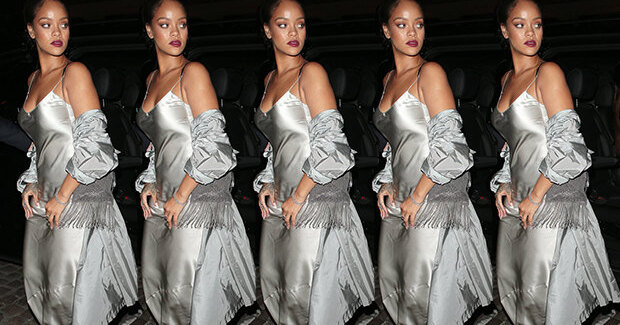 На ночь глядя: Рианна в шелковой комбинации и легком плаще Fenty Puma by Rihanna