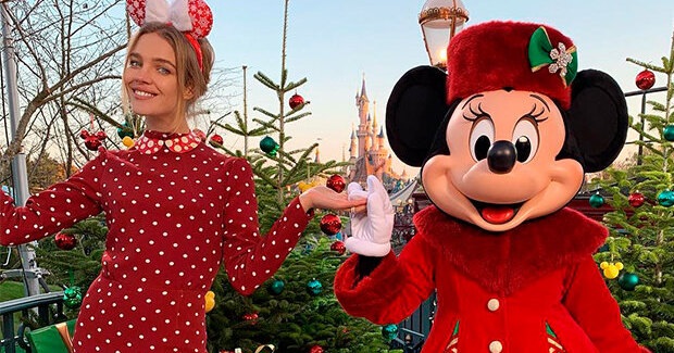 Сегодня исполняется 90 лет одному из самых известных и забавных диснеевских персонажей – Микки Маусу. По этому случаю в парижском Диснейленде прошел праздничный рождественский парад, куда съехались звездные друзья Микки. Среди них, конечно, оказалась Наталья Водянова. Модель в этот день поддержала героя в образе Минни. Звезда выбрала платье миди в белый горошек от российского бренда Roseville. Не обошлось и без фирменного воротничка и ушей. Высокие коричневые ботильоны из кожи и черные колготки помогли девушке не замерзнуть.