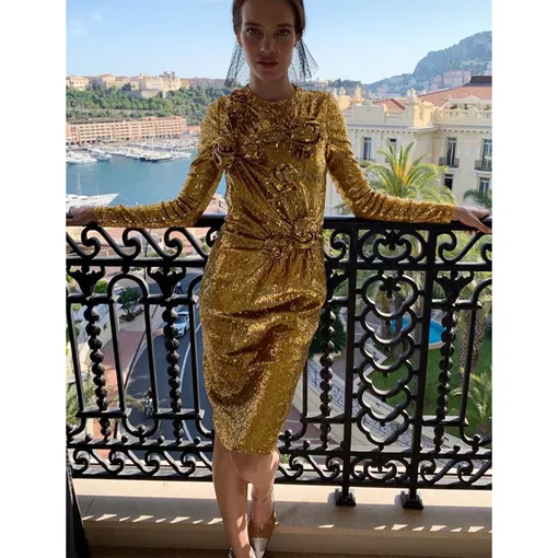 Пока Мелания Трамп выбирает лаконичные образы, Наталья Водянова идет от обратного, делает ставку на эффектные аутфиты и делится модными идеями со своими фолловерами. Российская супермодель прилетела в Монако, чтобы выступить перед успешными предпринимателями из разных стран в финале деловой программы «Предприниматель года». Чтобы произвести незабываемое впечатление, Водянова выбрала броское платье от Burberry, расшитое золотыми пайетками с объемными цветами-узелками. Финальным акцентом стали остроносые туфли на ремешках с контрастным мысом — в золоте с головы до ног Наталья точно не осталась незамеченной.