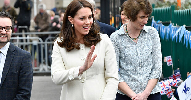 Совсем скоро королевское семейство пополнится новым членом — и речь идет не о Меган Маркл, которая в мае станет законной супругой принца Гарри, а о третьем ребенке Кейт Миддлтон и принца Уильяма, появление которого ожидается в ближайшее время. Об этом свидетельствует внушительных размеров живот герцогини, который она продемонстрировала во время сегодняшнего визита в начальную школу в Оксфорде. Для посещения она выбрала светлое пальто от бренда JoJo Maman Bébé, который специализируется на одежде для будущих мам.