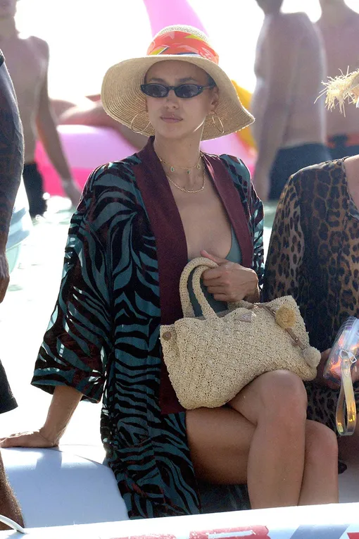Знаменитости разделились на два лагеря: одна половина богатых и знаменитых отдыхает на Миконосе, а другая — на Ибице. Ирина Шейк примкнула ко второй. На испанском острове супермодель отдыхает в компании мамы, дочери и сестры. Вчера папарацци застали ее с маленькой Леей во время морской прогулки, а сегодня — в окружении друзей. Ирина оттачивает курортный стиль: соломенная сумочка, балахон поверх купальника, шляпа и солнцезащитные очки — все модные аксессуары в одном образе.