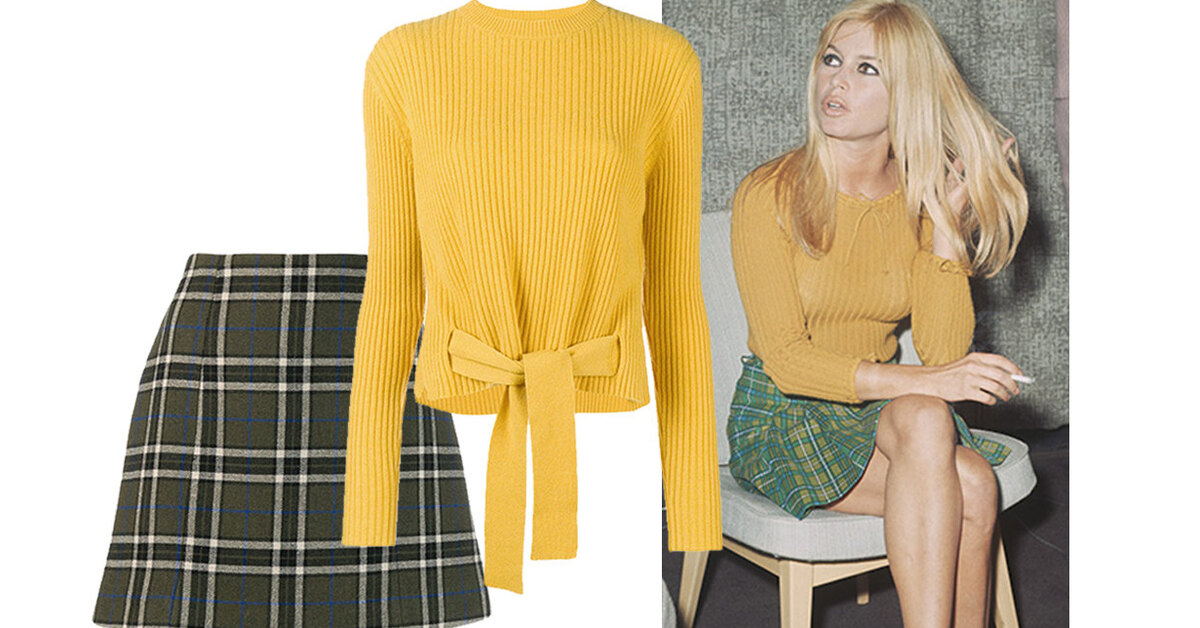 Обзавелись юбкой в стиле преппи, как рекомендовали все стилисты и дизайнеры, но не знаете, с чего начать дружбу с этим игривым предметом гардероба? Проверенный метод — повторить культовый образ из прошлого, чтобы точно не прогадать. Берите пример с Брижит Бардо и миксуйте задорное клетчатое мини с уютным джемпером сочного оттенка. А на ноги — пока погода балует - нюдовые босоножки на тонких ремешках. Да-да, такую обувь модницы полюбили задолго до появления The Row. Знаменитая француженка носила сандалии, уж очень похожие на нашумевшие модели авторства сестер Олсен, еще в 1966 году. Тем проще воспроизвести ее образ в наши дни.