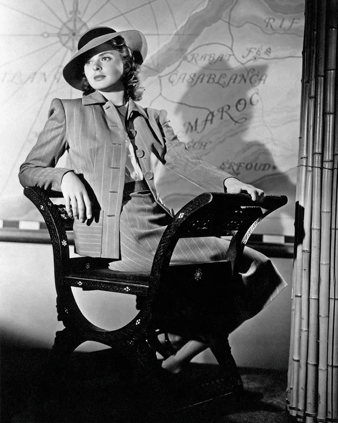 Ровно 77 лет назад на экраны вышла мелодрама Майкла Кертиса «Касабланка» о любви, разлуке и тоске по родине, которой суждено было стать голливудской классикой. Главную женскую роль в фильме сыграла тогда еще начинающая актриса Ингрид Бергман. За ее сценические образы отвечал именитый художник по костюмам Warner Brothers Орри-Келли, за плечами которого три премии «Оскар» — за работу над фильмами «Американец в Париже», «Герлз» и «В джазе только девушки». Действие «Касабланки» разворачивается во время Второй мировой войны, и героине Бергман благодаря Орри-Келли удается найти баланс в нарядах между шиком и сдержанностью. Например, костюм-двойка из плотной ткани, дополненный шляпой, — образец элегантности, который актуален и в наши дни.