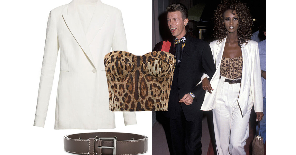 Иман, безусловно, одна из главных фэшиониста конца прошлого века. Несмотря на то что топ-модель повсюду ходила лишь со своим супругом Дэвидом Боуи, ее наряды все равно отлично просматривались — даже на совместных фото. Как, например, этот кипенно-белый брючный костюм, который звезда подиумов дополнила корсетным топом в леопардовой расцветке и шоколадным ремнем на талию. С момента, когда был сделан этот памятный кадр, прошло уже 27 лет, а образ знаменитости по-прежнему остается актуальным. Здесь и модный анималистичный принт, и акцент на талии, и незаменимый удлиненный блейзер. Мы повторили этот лук Иман с вещами современных дизайнеров — и однозначно советуем вам тоже последовать ее примеру!