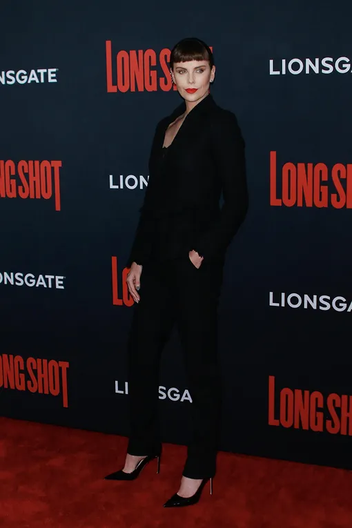 От нарядов для ковровых дорожек в стиле «золотого Голливуда» Шарлиз Терон решила перейти к строгим черно-белым образам. За один день звезда сменила сразу три комплекта, и нам остается только позавидовать тому, как идут ей смокинги и офисная классика вроде белоснежной блузы с воротником-стойкой и оверсайз-пиджака. Берем на заметку пару приемов: к «скучным» брюкам и рубашке добавляем очки в пластиковой оправе — утро понедельника мгновенно превращается в вечер пятницы. А к легкомысленному платью в горох не забудьте красную помаду и замшевые ботильоны — и вот вы уже не школьница, а рок-звезда.