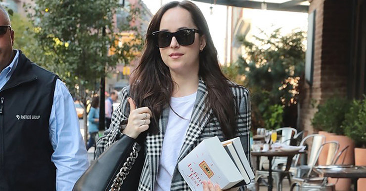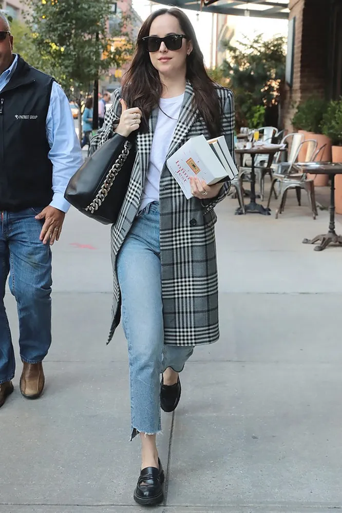 Осень в клетку: Дакота Джонсон в пальто Fay в Нью-Йорке