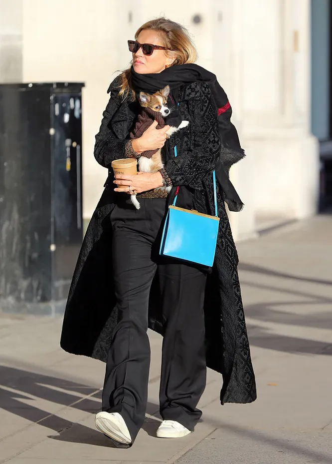 Осень в стиле Кейт Мосс: любимое пальто с вышивкой, кофе и пушистый друг на руках