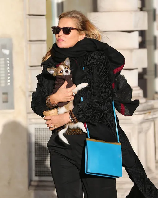 Если для Ирины Шейк лучшей компанией для шопинга стала крошечная дочь Лея, то Кейт Мосс даже во время похода по магазинам не готова расстаться с любимым щенком. Трогательная пара попала в объектив папарацци во время прогулки: Кейт прижимала к себе собаку, мерзнущую даже в вязаном жилете, а в другой руке сжимала согревающий напиток для себя. Мосс, ас координации, сумела не только согреть друга и не запутаться в ультрадлинных брюках и полах пальто с ажурной вышивкой, но и поймала такси — уверены, даже на каблуках модель легко бы справилась с задачей.