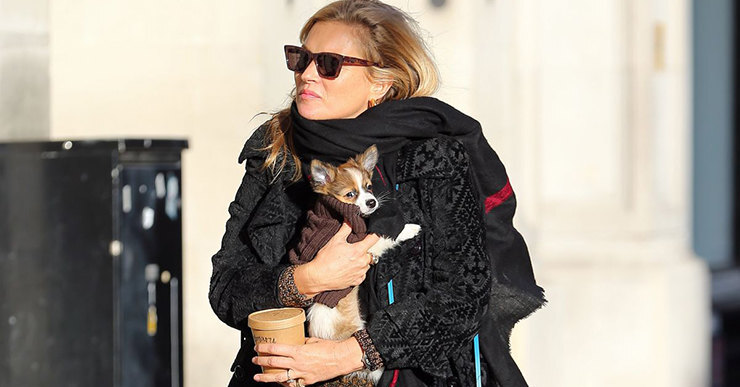 Осень в стиле Кейт Мосс: горячий напиток и пушистый друг на руках