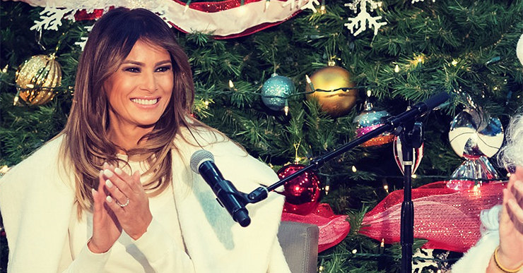 Поддержав пострадавших от урагана «Харви» в Техасе, Мелания Трамп вернулась в Вашингтон и отправилась в Детскую национальную больницу. По традиции, первая леди США встретилась с маленькими пациентами и лично почитала им сказку «Полярный экспресс», а компанию ей составил Санта-Клаус. Впрочем, и сама Мелания была похожа на Снегурочку в кремовых топе и юбке-карандаше, лодочках Manolo Blahnik и с наброшенным на плечи пальто Max Mara из шерсти альпаки. Дети закидали супругу президента вопросами: например, 10-летний Энди поинтересовался, как их гостья хотела бы провести Рождество, на что Мелания ответила: «Я мечтаю отдохнуть на безлюдном тропическом острове вместе с моими близкими». Трамп также призналась, что даже на рождественском столе предпочитает видеть полезные блюда: «После такой еды вы чувствуете легкость без переедания», — и рассказала, о чем попросила Санту в этом году: «О мире во всем мире, здоровье, любви и доброте».