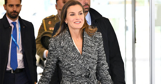 Длинное пальто с поясом в дуэте с высокими сапогами — что может быть практичнее в условиях приближающейся зимы. Королевам комбо тоже не чуждо. Например, супруга короля Испании Летиция посетила первую всемирную конференцию WHO в Женеве, посвященную проблемам здоровья и экологии. Она появилась на мероприятии в сером пальто, под которым прятался костюм-двойка с юбкой миди и белой блузой, а завершали образ кожаные ботфорты.