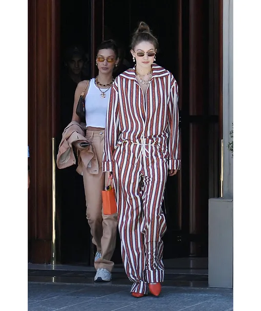 «Пижамная» двойка vs деним: Белла и Джиджи Хадид гуляют по Флоренции
