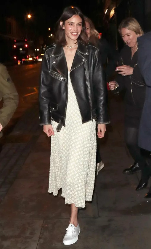 Платье на голое тело, косуха и кеды: Алекса Чанг в образе подруги байкера в Лондоне