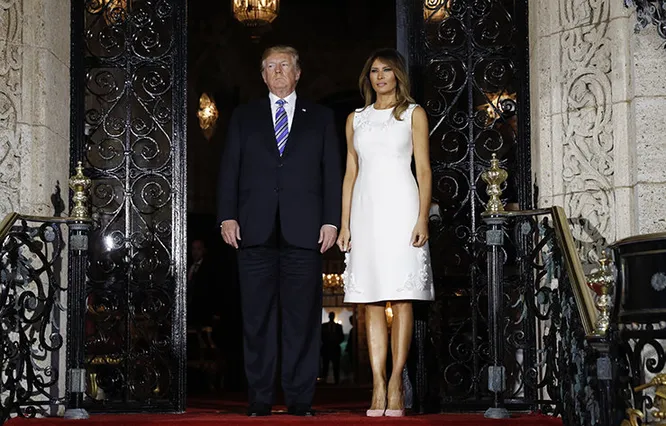 После небольшой передышки от официальных визитов Мелания Трамп вернулась к насыщенной общественной жизни и вновь радует нас своими эффектными образами. Президентская чета продолжает принимать у себя в гостях премьер-министра Японии Синдзо Абэ и его супругу Акиэ: в честь почетных гостей Дональд и Мелания Трамп устроили торжественный ужин в своей частной резиденции «Мар-а-Лаго» во Флориде.