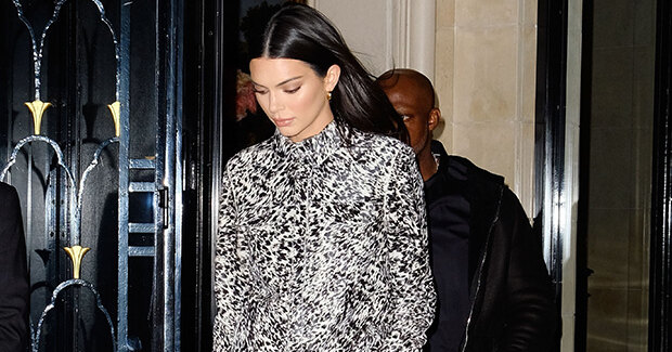 Кендалл Дженнер смело можно назвать трендсеттером – то, что топ-модель носила вчера, мы всем модным миром будем носить завтра. Так что на следующий сезон пора приготовить массивные ботинки на каблуке и с внушительной платформой. Именно в таких девушку застали фотографы минувшим вечером в Париже. Рубашка с абстрактным черно-белым принтом и кожаные широкие брюки тоже заслуживают внимания.