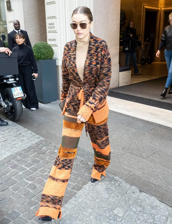 Привет, 70-е: вязаный костюм-пэчворк — маст-хэв на весну от Джиджи Хадид