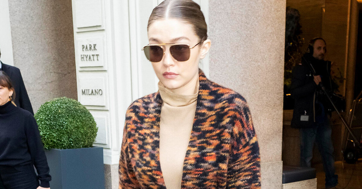 Москву вновь засыпало снегом, а в Милане уже царит весна: теплая погода позволила Джиджи Хадид выйти на прогулку по модной столице Италии без верхней одежды. Модель облачилась в вязаный костюм-двойку: кардиган с деликатным тигриным принтом и брюки в излюбленной технике пэчворк. Уютный комплект старшая из сестер Хадид объединила с бежевой водолазкой и поддержала ретронастроение 1970-х очками с широкими стеклами и тонкой золотой оправой.