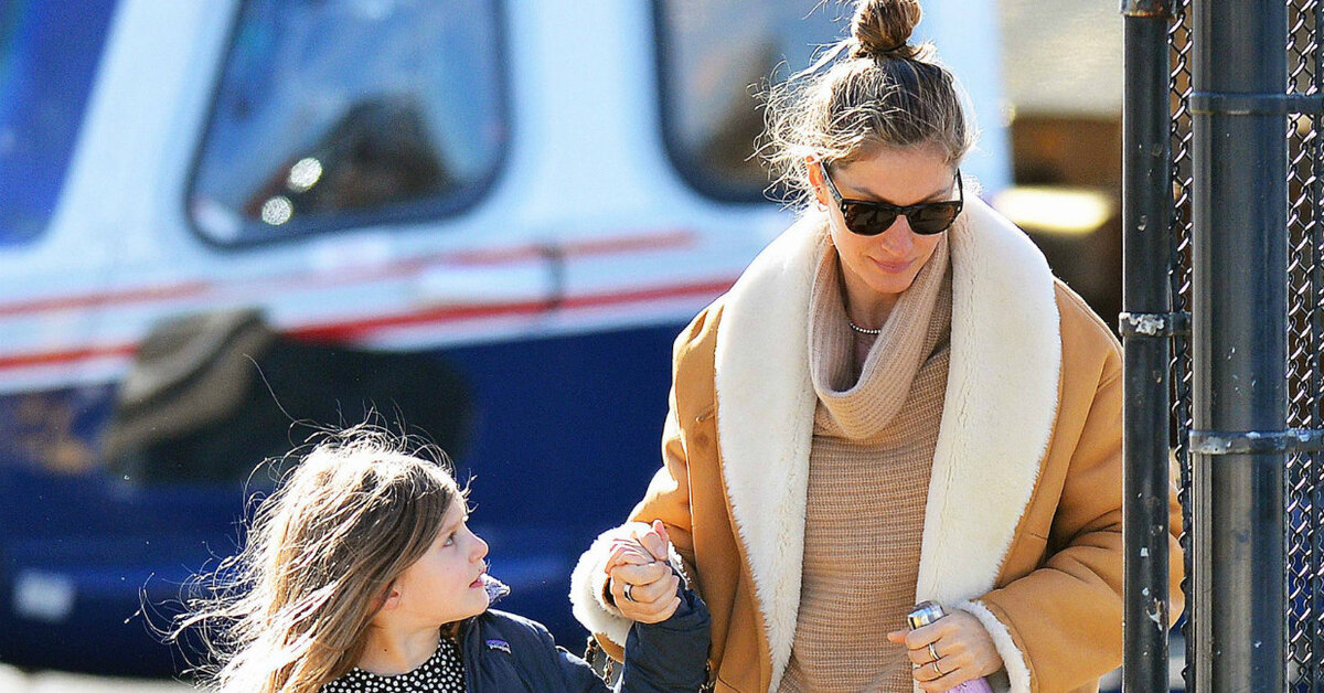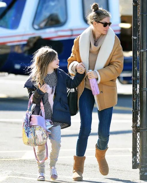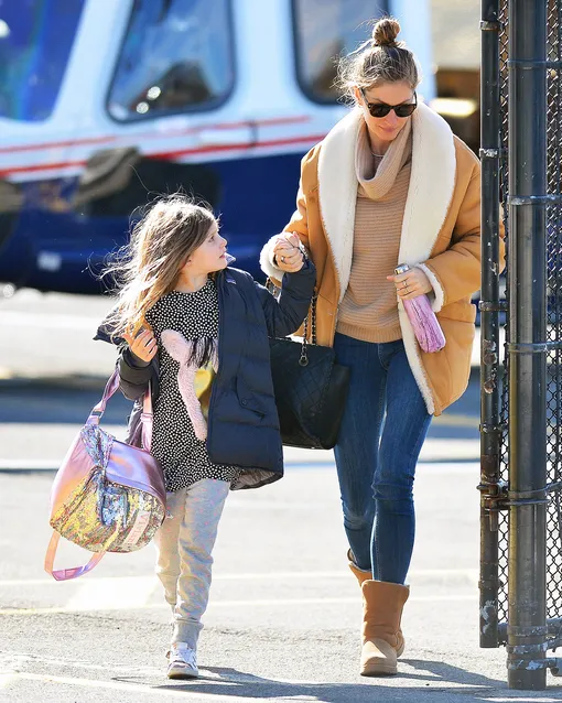 Жизель Бундхен прилетела в Нью-Йорк с мужем Томом Брэди и 7-летней дочерью Вивьен. Семейство отправилось в Большое Яблоко на вертолете.