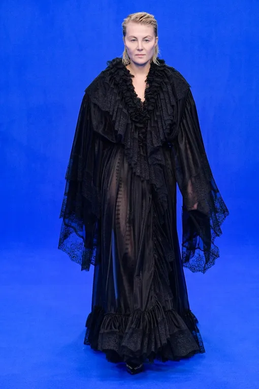 Российская актриса и режиссер Рената Литвинова стала моделью на недавно прошедшем в Париже показе Balenciaga. Муза креативного директора бренда – Демны Гвасалии – вышла на подиум в драматичном платье из черного кружева.